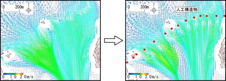 人工構造物設置による風況変化予測結果